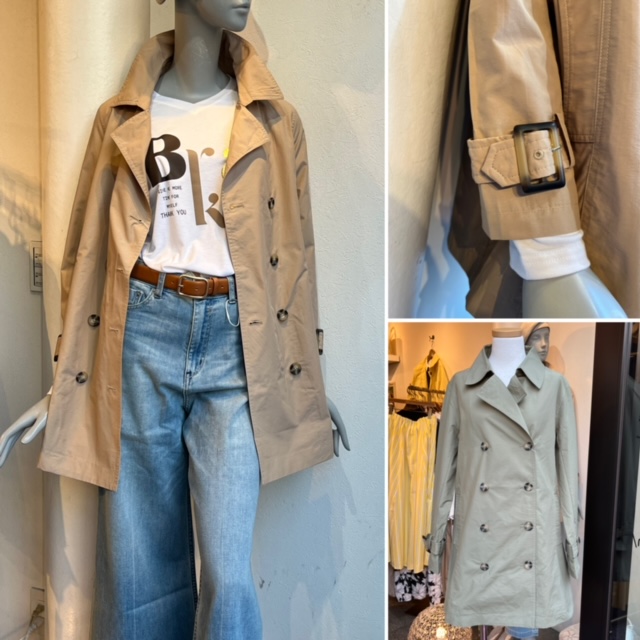 トレンチコート ¥9800+tax🌸 撥水加工のトレンチコートが到着しました。 カーキとベージュの2カラー 上質な素材感と、少しハリのある軽量の綿✖️ナイロンミックスの高見え生地😍 裏地付きで、寒さ対策も◎ 春も秋も大活躍の1着です 綿55ナイロン45 サイズ 38.40 2023年2月18日