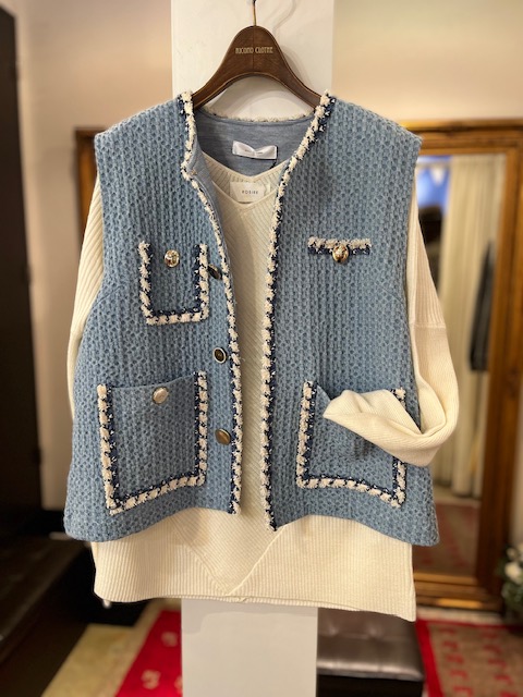 ボタンデザインジレ💕 Eimee Lawのデザインジレ💕 全てのボタンがデザイン違いの個性が光るおしゃれなジレ。 素材はコットン100なので、軽く初夏までお使い頂けます。 今季のデニムコーデに合わせても素敵⭐️⭐️⭐️ ジレ ¥15800+tax サイズ38 2023年2月18日