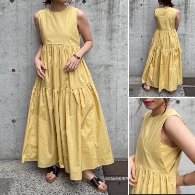 ティアードドレス💕 コットンドレス ¥15000+tax💕 上質なコットンタイプライター素材のティアードドレス💕 マットな艶感が少しあって、かなり高級感があります。 脇の下も綺麗に縫い込んであるから、開き過ぎなくてGOOD💕💕💕 デニムジャケットや、デザインカーディガンを肩にかけてね。 裏地付きで安心。 スニーカー合わせも素敵です💕💕💕 マスタードイエローのみです 2023年3月5日