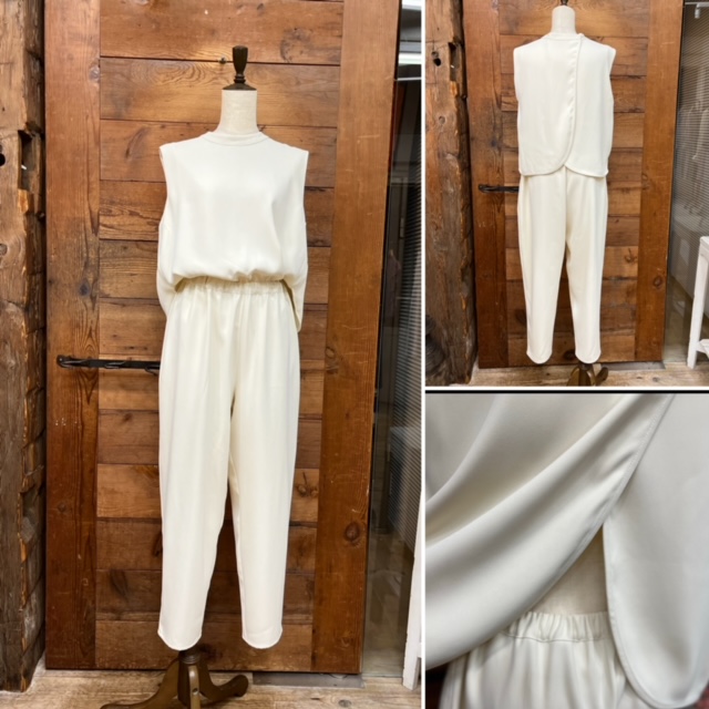 オールインワン 💕 とろみ感のあるポリエステル素材のオールインワン 💕 バックカシュクールでめちゃお洒落💕 オケージョン対応もこれでOK, お写真はアイボリーで、お色違いはブラックがございます ¥12000+tax 38サイズ 2023年3月5日