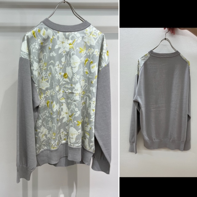 花柄配色トップス ¥6900+tax💕 水彩画の様な繊細なタッチのフラワープリント✖️ニットのプルオーバです フロントには上質な日本生地を使用。 バックには初夏まで着られる薄手のニットをドッキング。 一枚で主役級の華やかなプルオーバー です サイズ38 着丈60身幅51 平置き採寸 2023年3月5日
