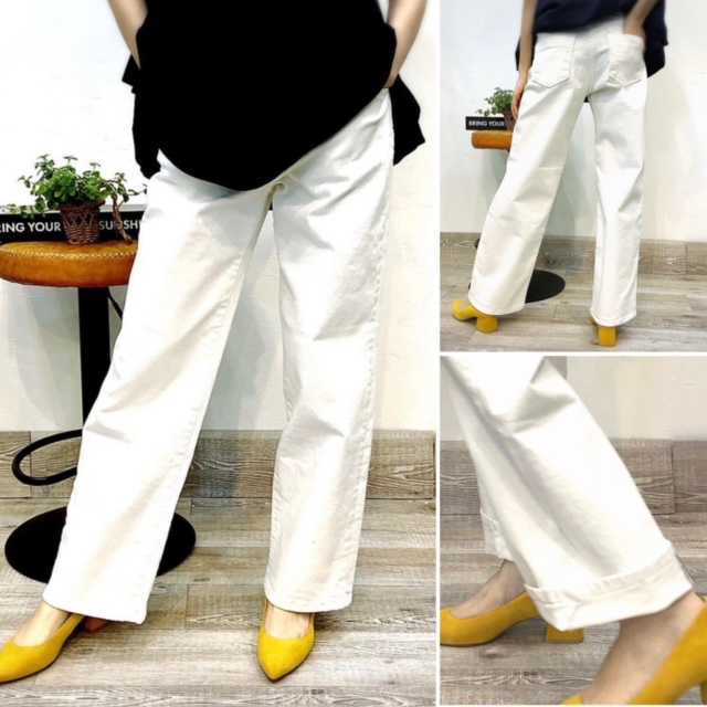 ホワイトデニム💕¥11800+tax ストレッチの効いたホワイトデニムのストレートパンツ💕 適度に股上が深くて、ヒップラインを拾わない😆 透け感もほぼ無くて安心な白パンツです カジュアル過ぎずに綺麗な美脚シルエットも◎ 夏はロールアップして履くのもGOOD XS.S.M.L.XLのサイズで展開中です 6日のインスタライブで動画説明しております😃 2023年3月9日