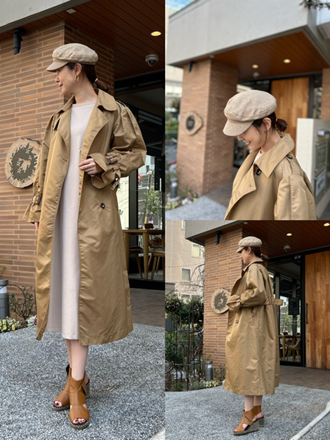 トレンチコート¥29,700 キャスケット¥5,390 ボリュームのある袖と肩に入ったタックがポイントのトレンチコート🌸 ポリエステル100%でツルツルした質感なので、お手入れも簡単です✨ トレンチコート¥29,700 キャスケット¥5,390 2023年3月9日