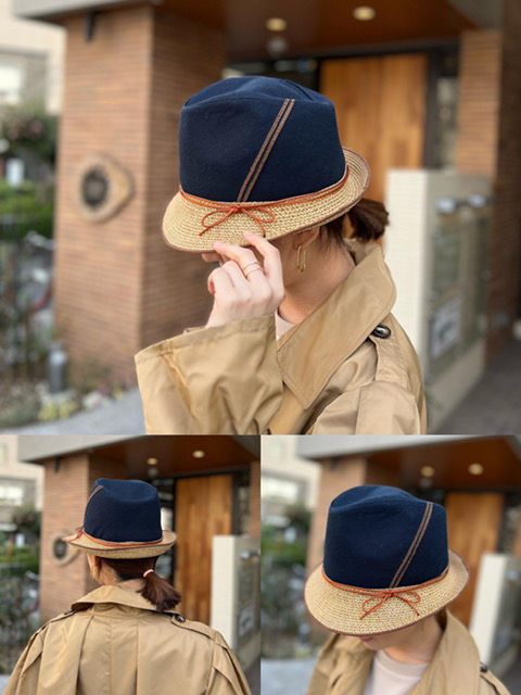 コーディネートのアクセントになるハット🌸 ネイビーとのバイカラーがお洒落です✨