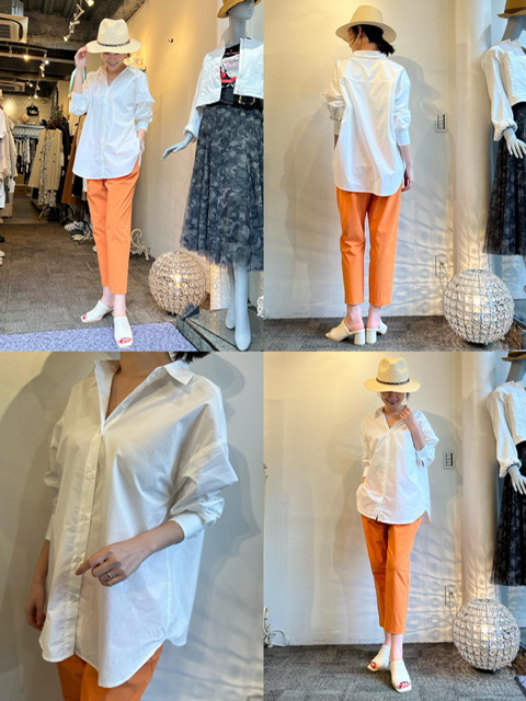 ブラウス¥5,940 パンツ¥10,890 シンプルな白シャツとカラーパンツコーデ🧡 パンツはテーパードなシルエットで、腰回りゆったり✨ 撥水加工されているので機能性も🙆🏼♀️ご自宅で手洗いOKです! ブラウス¥5,940 パンツ¥10,890 2023年3月30日