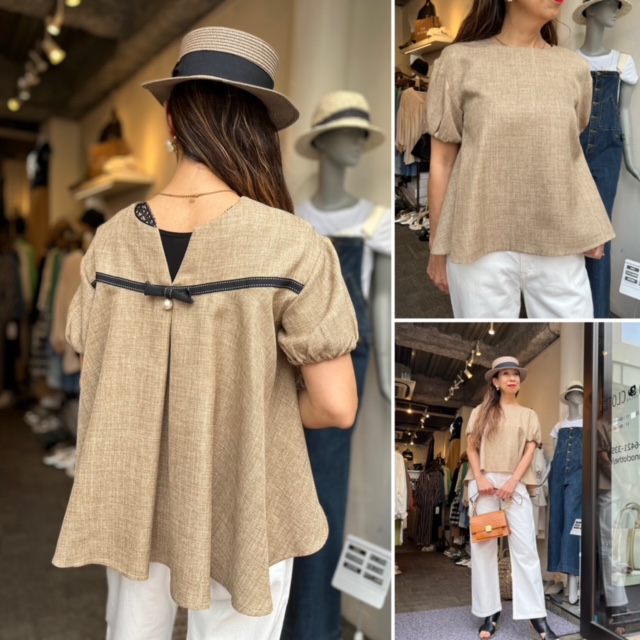 バックテールのトップス ¥17000+tax💕 スッキリしたネックラインと少しだけAラインのシルエットが素敵な麻調ポリエステルのトップス💕 一枚で主役級のお出掛けアイテムになります。 お揃いのショートパンツを合わせたり、ワイドパンツやデニム 、タイトなどにも好相性💕 ハンドウォッシャブルで、シワ無しのストレスフリーなトップスです お写真のベージュの他に、オフホワイト、ブラックがございます 素材 ポリエステル100 モデル 身長168 ホワイトデニム ¥13800+tax 2023年4月15日