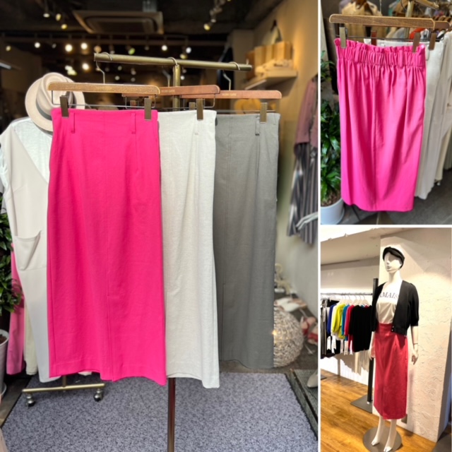Iラインスカート💕 ¥13000+tax ストンとしたシルエットで大人顔のストレッチタイトスカートが入荷しました💕 抜群の伸縮があって、ヒップを拾いにくい⭐️ ポリエステル78✖️コットン15✖️リネン7の初夏に快適な素材感が嬉しい。 ウォッシャブル⭐️で ベルトループあり💕 ピンク、ベージュ、カーキの3カラー で到着しました。 着丈88 サイズ M 2023年4月20日