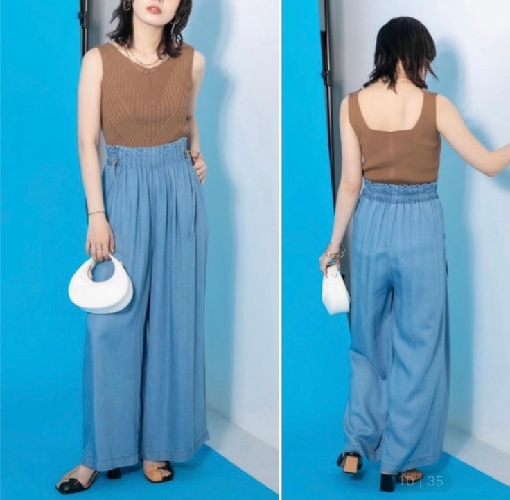 テンセルデニムのワイドパンツ 💕 トロンと落ち感のあるテンセルデニムのワイドパンツが到着いたしました💕 ウェストの細かいピンタックデザインでウェストスッキリさせてくれます。 またドロスト仕様でウェストの調整ができる💕ので、サイズは38ですが、S〜Lサイズの方まで対応できます。 カラーはお写真のウォッシュカラーと濃いめのインディゴがございます。 テンセルデニムの素材で、この価格はかなりお得です⭐️⭐️⭐️ テンセルデニムパンツ ¥12800+tax 素材 テンセル70コットン30 股下62.3 2023年4月20日