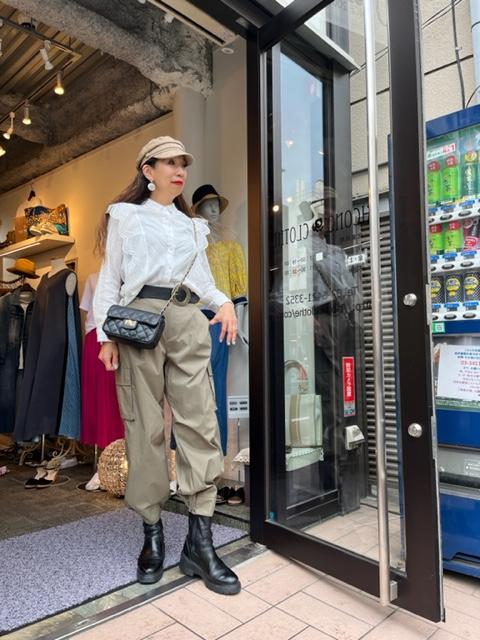レースブラウス✖️カーゴパンツ💕 とっても履きやすくて、軽い素材のカーゴパンツが、入荷しております💕 ブランドは人気のayane💕 36サイズ一点のみとなってしまいましたが、おサイズの合う方はぜひお薦めです。 Tシャツ合わせはもちろん、こんなフェミニンなレースのブラウスも素敵です💕 黒のブーツと黒ベルト、プチバックでキュートなアクセントも忘れずに💕 パンツ ¥13800+tax 本革ベルト ¥8900+tax 本革ポシェット ¥18000+tax キャスケット ¥4900+tax 2023年4月21日