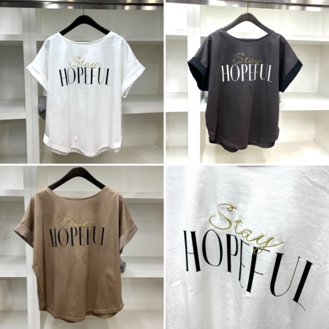 刺繍Tシャツ💕¥3900+tax 少し広めのネックラインとお洒落なロゴと刺繍💕毎年人気の、デザインTシャツが入荷しましたー 白、チャコールグレー、モカブラウンの3カラー。フリーサイズです。 フリーサイズ💕 2023年4月22日