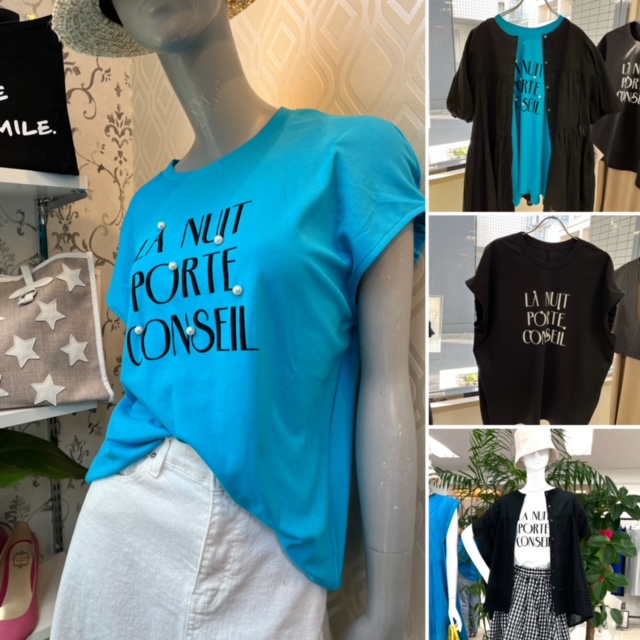 ロゴパール付きトップス💕¥5900+tax 上質なコットン100のしなやかな素材感。 ビックシルエットなので、華奢見え120%⭐️⭐️⭐️ 透け感無し 白、ブルー、ブラックの3カラーです ホームクリーニングOK🙆♀️ 合わせやすくて万能なデザインです 2023年4月22日