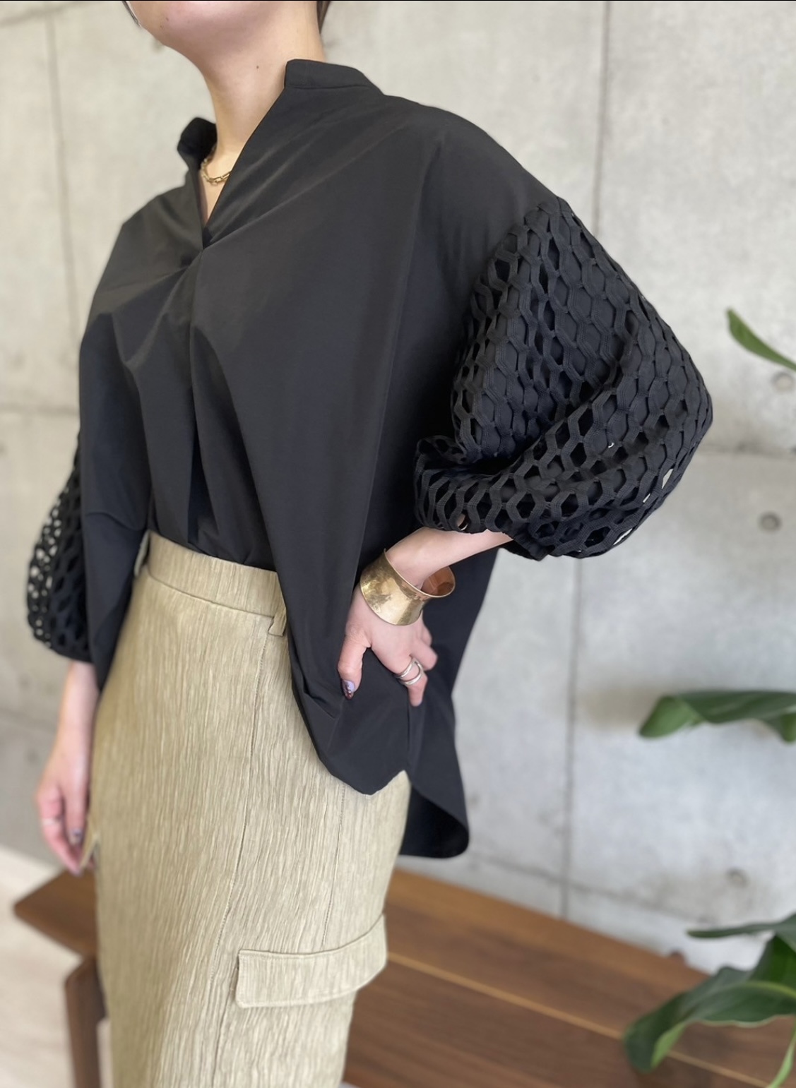 袖切り替えトップス💕 ポリエステル✖️コットンのサラッとした生地で、これから秋まで大活躍してくれそうなデザイントップスが入荷しました💕 お洗濯してもシワになりにくく、汗をかいても速乾⭐️⭐️⭐️ 毎日忙しい貴女にぴったりのデザインブラウスです お写真の黒の他に、ホワイトもございます。 フリーサイズです ブラウス ¥14000+tax 2023年4月22日