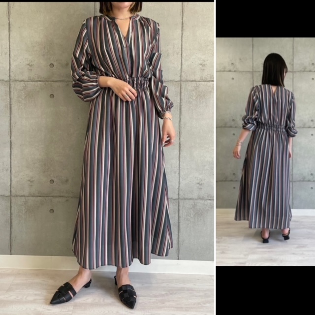 マルチストライプのワンピース💕 ROSIEEの人気デザイン💕 ウェストシャーリングのワンピースに、マルチストライプの新柄が到着しました。 ストンと着るだけで、スッキリ着痩せシルエットが叶います😆⭐️⭐️⭐️ ポリエステル素材でお手入れ楽ちん。 オールシーズンご活躍いただけます💕 ワンピース ¥18000+tax 2023年4月25日