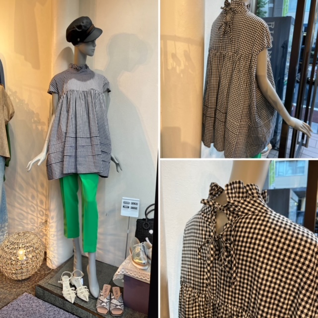 チェックチュニックブラウス💕¥9900+tax ギンガムチェックのデザイントップス💕 綿✖️ポリエステルのとっても軽い素材感です。 白とギンガムチェックの2カラー バックリボンのデザインがめちゃキュートな一着💕 サイズ 38 2023年4月25日