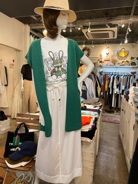 白タイトスカートの爽やかコーデ💕 ayaneから新作の白のタイトスカートが入荷しました💕 透け防止の裏地付きで安心💕 真夏もサラッと着て頂けます インポートのうさちゃんTシャツと、サマージレをアクセントに💕 爽やかでキュートなコーデです Tシャツ ¥6900+tax スカート ¥15800+tax 38.40の2サイズ 着丈93 紐調整あり ニットジレ ¥8900+tax B-106 L-80 日本製 日本製 2023年4月25日
