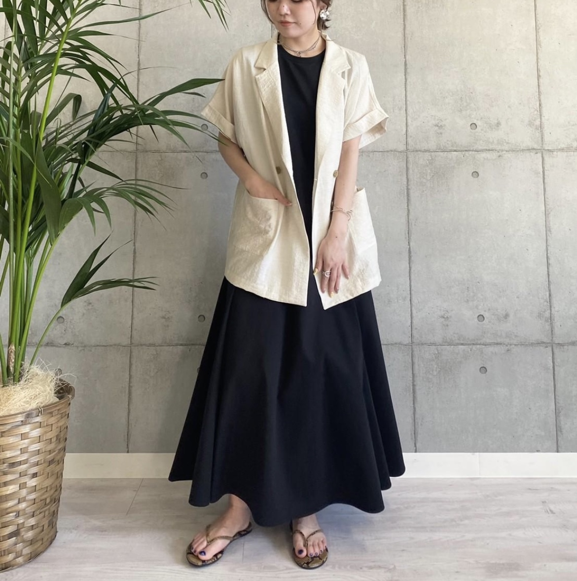サマージャケット💕¥18000+tax レーヨン、ナイロンにリネンをミックスしたしなやかなサマージャケットが明日入荷いたします💕 綺麗めなコーデはもちろんの事、デニムやワイドパンツなどのカジュアルコーデにもお役立ちのジャケットです。 お写真のライトベージュ、万能なブラックで入荷いたします。 小柄な方にもお薦めのお洒落なジャケットです💕 ジャケット ¥18000+tax レーヨン66 ナイロン22 リネン12 着丈73 2023年4月27日