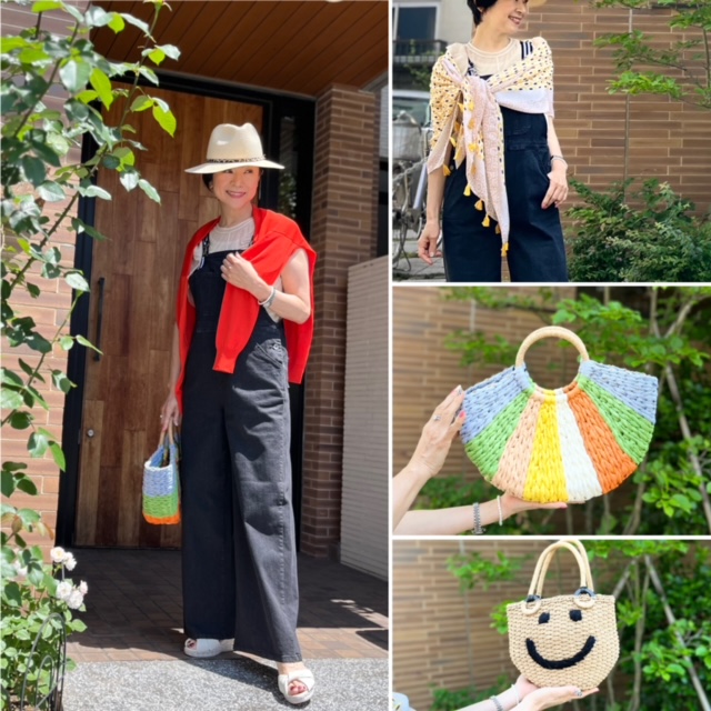 ブラックサロペットパンツ ¥18000+tax 大人フェミニンなブラックのサロペットデニム💕気持ちよく伸縮して着心地GOOD⭐️⭐️⭐️ S.M.Lの3サイズで展開中 小物やストールでアクセントをON💕 モデル身長165cm 赤いカーディガン ¥8900+tax マルチカラーのカゴ ¥6500+tax ストール ¥5800+tax ブラウス ¥11000+tax サンダル ¥18000+tax ニコちゃんバック ¥8500+tax 2023年5月10日
