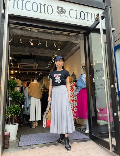 ロゴが効いたVネックTシャツは、どんなアイテムにも合わせやすく、ロゴが着こなしのアクセントに💕