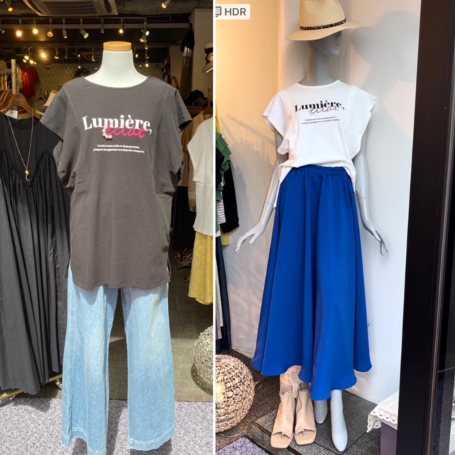 パール付きデザイントップス💕¥6900+tax 腕を細見えさせてくれるデザイントップス💕 フレンチ🇫🇷シックなロゴとカラー配色💕 更にはパールモチーフでオシャレ度120%💕 肌触りの良いサラッサラーの生地も嬉しい。 パンツ、スカートともにコーデ可能⭐️ 手洗い可💕 トップス ¥6900+tax 右スカート ¥13000+tax コットン95ポリウレタン5 2023年6月4日