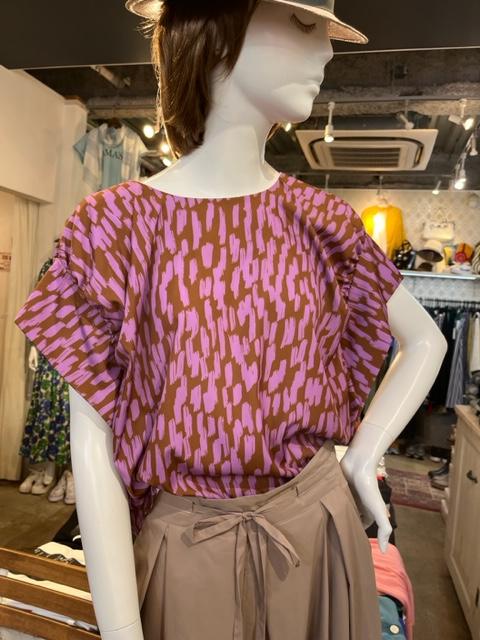 プリントシフォントップス💕¥9800+tax ブラウンにラベンダーピンクのプリントが素敵なトップス💕 晩夏初秋に向けて、シックなカラーをセレクト💕 ブリーチ系のデニムやアイボリー系のボトムスとも好相性💕 トップス ¥9800+tax ポリエステル100 サイズ フリー コメントは受け付けていません。