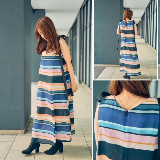 マルチボーダーワンピース💕¥24000+tax ランダムなボーダーのワンピースです♡ ボーダーの配色がとっても可愛いです♪ 長めの肩のリボンもポイントです★ やや透け感があるので、ペチコートなどを合わせて着用することをお勧めします◎ ●素材 ポリエステル100% ●サイズ 38 着丈120cm 身幅48cm 裾幅34cm 2023年6月15日