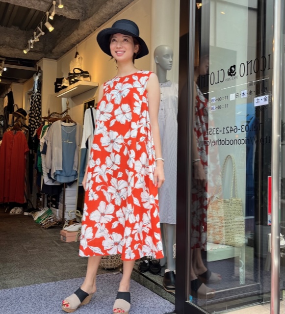 大花柄ワンピース💕¥25000+tax 朱赤に大きな花柄が華やかなワンピース💕 麻調の素材ですが、ポリエステル100なので、シワになりにくく、少しハリのある上質な生地です。 スッキリしたアームのラインで、脇見え防止シャーリングとなっており、安心です💕 サイズ フリーサイズ 素材 ポリエステル100 帽子 ¥3900+tax ポケッタブル ウォッシャブル⭐️⭐️⭐️ サンダル ¥7900+tax 22.5〜24.8 2023年6月15日