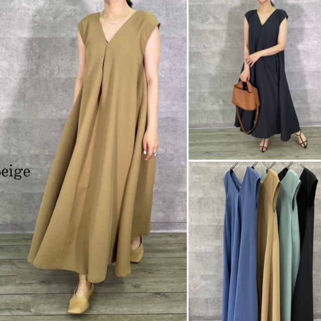 なかなか無いVネックの布帛のワンピースを見つけました💕