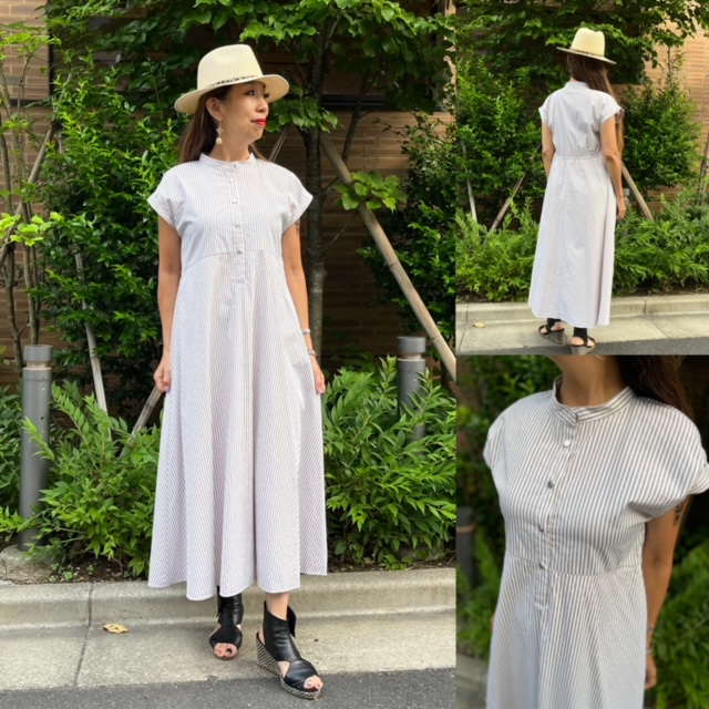 ストライプ切り替えワンピース💕 夏らしい爽やかなストライプのワンピース💕 ウェストに切り替えを入れて、バックにゴム使用。 きちんと見えて、着心地はストレスフリーーーー💕 ポリエステル素材で、お手入れも楽々⭐️ ワンピース ¥15000+tax ポリエステル100 裏地 ポリエステル100 サイズ 38 ¥4290 本革サンダル ¥18900➕tax 2023年6月21日