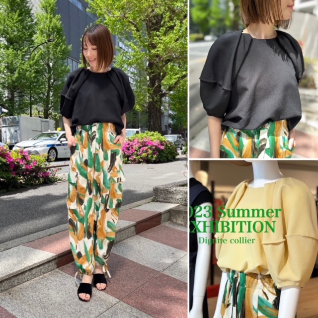 お袖ボリュームトップス💕 立体的なフォルムが美しい、ジョーゼット素材のデザイントップスが本日入荷いたします💕 ペイント風のプリントが素敵なカーゴパンツに合わせて、とびきりお洒落なコーデでお出かけしませんか? パンツは落ち感があってサラッサラーの着心地です💕 トップス ¥12000+tax ブラック、クリームイエロー ポリエステル100 フリーサイズ パンツ ¥13600+tax ポリエステル100 股下66 裏地付き 透け感無し モデル身長 167 2023年6月24日