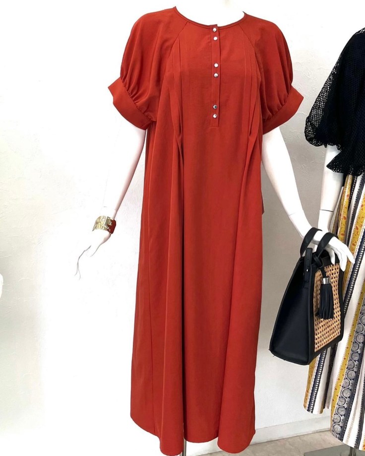 ふんわりお袖のワンピース💕¥9800+tax ポリエステル素材の超軽量ワンピース💕 驚くほど軽くて涼しいお薦めの素材です 速乾&ノープレスで着られる😍から、忙しい貴女の味方です シックなダークレッドカラーは晩夏の残暑シーズンにも◎ 胸元のボタンを少し開けて、抜け感を出して着るのもGOOD💕 身長150センチ前半の小柄さんにもお薦めです ラスト一枚をお見逃しなくーーー ワンピース ポリエステル100 フリーサイズ 2023年6月24日