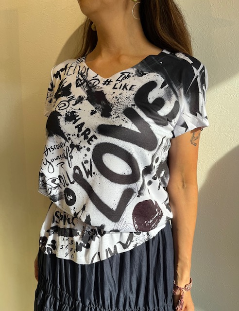 英字プリントトップス💕 イタリア🇮🇹から入荷した英字プリントのVネックカットソー💕 サラッとした着心地で、適度な身幅がありクールなイメージです。 裾は、ヒップが半分隠れる位の着丈です。 今から秋の立ち上がりまで大活躍してくれそう。 英字プリントトップス ¥8900➕tax 20%オフ M〜Lサイズ 手洗い可能💕 2023年7月3日