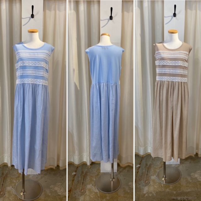 ボーダーレースのワンピース💕SALE 爽やかなサックスブルー やライトベージュに、白のレースをボーダーにデザインした夏のワンピースが到着しました💕 リネン✖️レーヨンのとっても涼しくてサラサラな素材感が気持ち良い💕 速乾でシワになりにくくお手入れも楽ちんです 各一点のみの入荷となっておりますので、お早めにチェック下さいね。 合わせる、白カーディガンもございます💕 ワンピース ¥14900+tax 20%オフ🎉🎉🎉 サックスブルー 、ベージュ バスト92 着丈118 本体 リネン55レーヨン45 レース ポリエステル100 ニット部分 綿53アセテート47 2023年7月10日