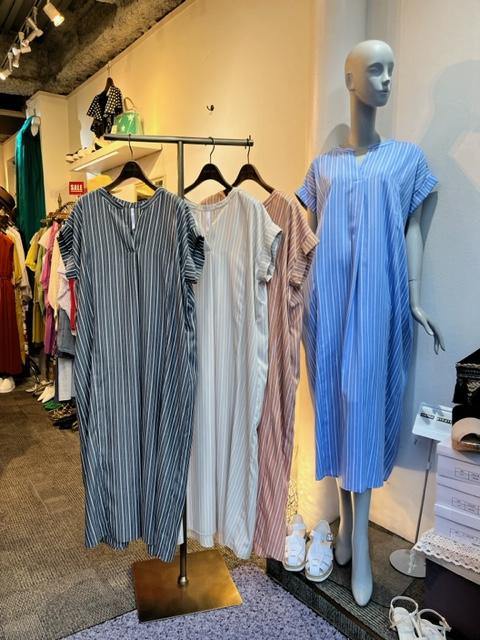 ディニテコリエ シャツワンピース💕SALE サラッと軽く着られる、ストライプのワンピース💕綿65ポリエステル35なので、シワにならずにお手入れ楽ちん 真夏もサラサラの着心地が嬉しい スニーカーやサンダルで軽快に着こなしたい😍 ネイビー、ベージュ、キャメル、ブルーの4カラーが揃いました。各一点のみ ワンピース ¥13000+tax 30%オフ ¥9100+tax💕💕💕 フリーサイズ 着丈 121 身幅 62 裄丈 34 裏地はついておりません 2023年7月22日