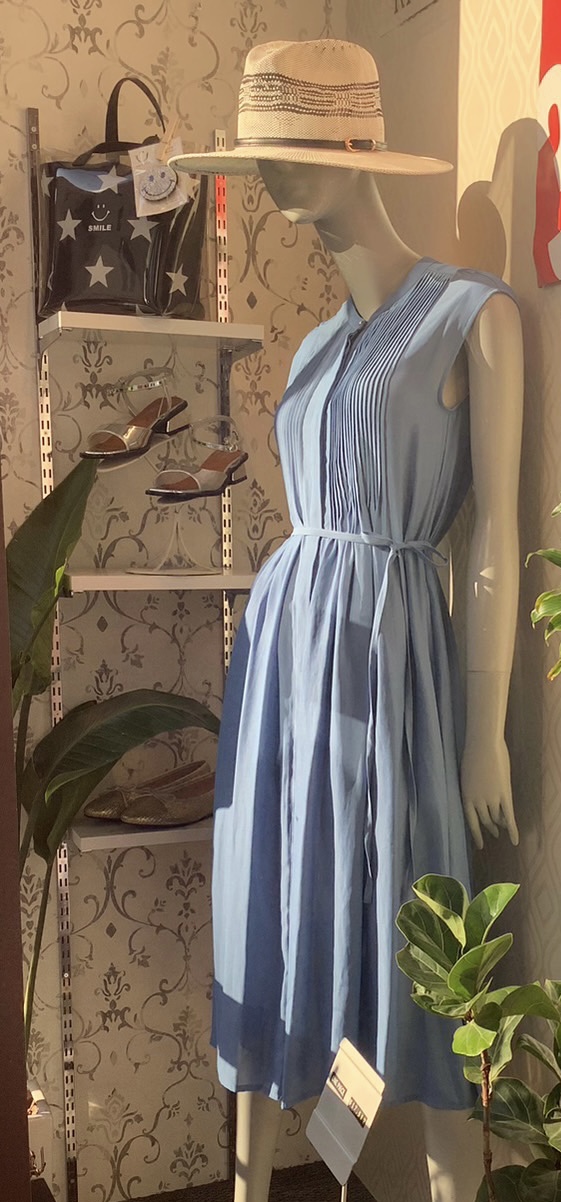 ワンピース SALE💕 胸元のピンタックがお洒落なワンピース💕 フロントを開けて、ロングジレとしても使えるスグレモノ⭐️⭐️⭐️ 上質なポリエステル100で、高見えしますーー お写真のサックスブルーとネイビーの2カラーで、38.40の2サイズとなっております。 新商品ですが特別値引きいたします💕 ワンピース ¥19900+tax 20%オフ ¥15920+tax😍 2023年7月23日
