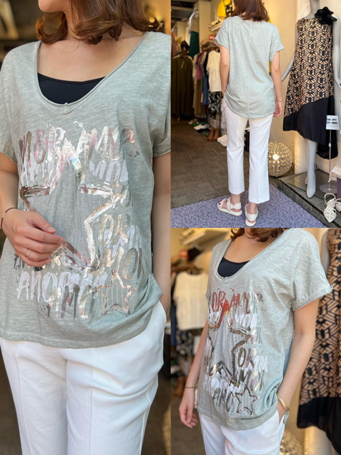Tシャツ¥8,690 ✨ Made in italy🇮🇹のTシャツが入荷しております✨✨ 光沢のあるプリントが華やかでお洒落です💚 お尻が隠れる長さがあります☺️ Tシャツ¥8,690 2023年8月1日