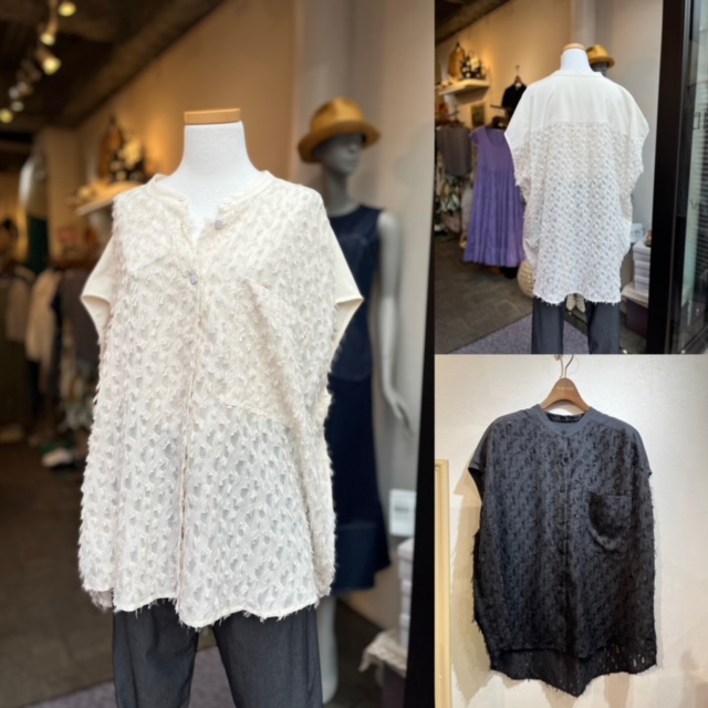 カットジャガードのブラウス💕 ¥13800+tax シアー素材とジャガードを組み合わせた、高級感のある素材が魅力的な一着💕 とっても涼しいのに、秋立ち上がりの新鮮なコーデを楽しんでいただけます ポリエステル素材なので、汗をかいてもさっと洗って、速乾、ノーアイロンの快適アイテム⭐️⭐️⭐️ ホワイトとブラックの2カラー 限定数のみのアイテムとなります 2023年8月2日