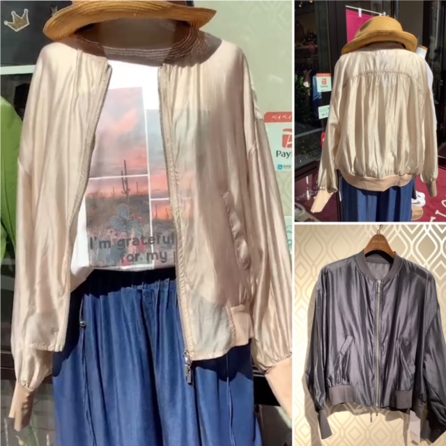 シアーブルゾン💕¥7900+tax 今季大人気のシアーブルゾン💕 レーヨン✖️ポリエステルのとろみ素材を使い、高見え😆 コンパクトなシルエットでどんなアイテムにも合わせやすいデザイン。 シャンパンベージュ、チャコールグレー、ブラックの3カラーで入荷しております。 素材 レーヨン85 ポリエステル15 身幅 60cm 肩幅 56cm 着丈 54cm 袖丈 50cm 2023年8月2日