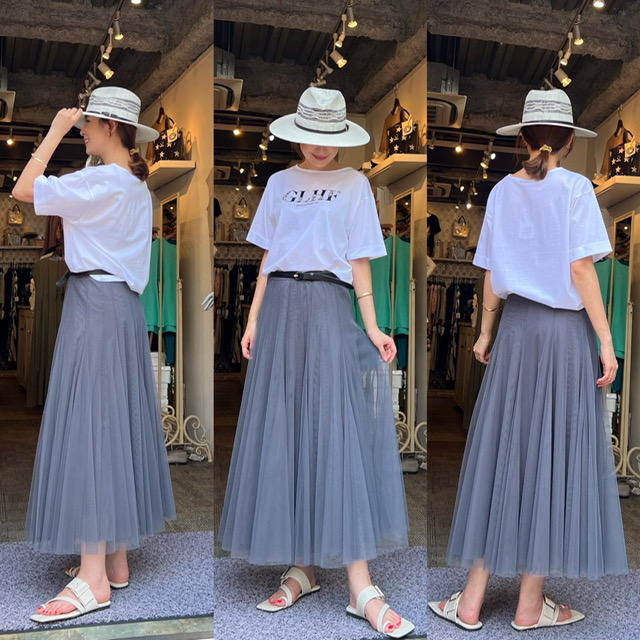 Tシャツ¥4,950 スカート¥11,880✨ 旬のロゴTにチュールスカート👗 スカートは生地をたっぷり 使っているので動きがあってエレガントです✨ 合わせやすいグレーと落ち着いたグリーンもございます☺️ Tシャツ¥4,950 スカート¥11,880 2023年8月2日