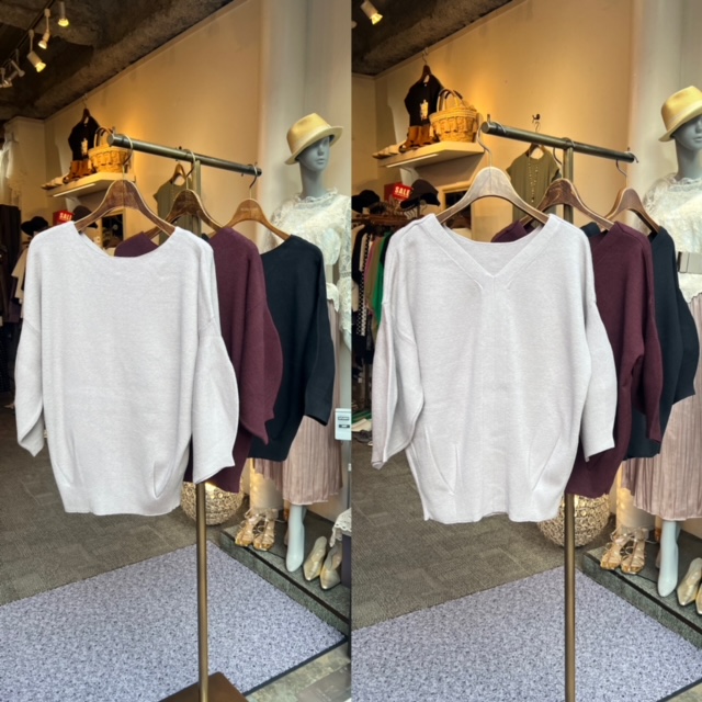 秋の新作2WAYニット💕 静電気が発生しにくい加工をしており着脱時の不快な静電気を軽減します✨ 2WAY仕様なので、前後どちらでも着用していただけます✨ サイズFREE ポリエステル29% アクリル26% レーヨン23% ナイロン22% ニット ¥4900+tax コメントは受け付けていません。