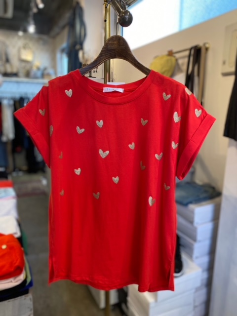 ❤️Tシャツ 50%オフ🎉 イタリアインポートのキュートなハート❤️テイシャツが、50%オフ🎉🎉🎉となりました。 この秋、トレンドカラーの赤を一枚ゲットしておくのは良いかも💕😍 プリントは、❤️のシャンパンゴールドカラーになっております。 Tシャツ ¥6900+tax 50%オフ ¥3450+tax🎉 サイズ M〜L コメントは受け付けていません。