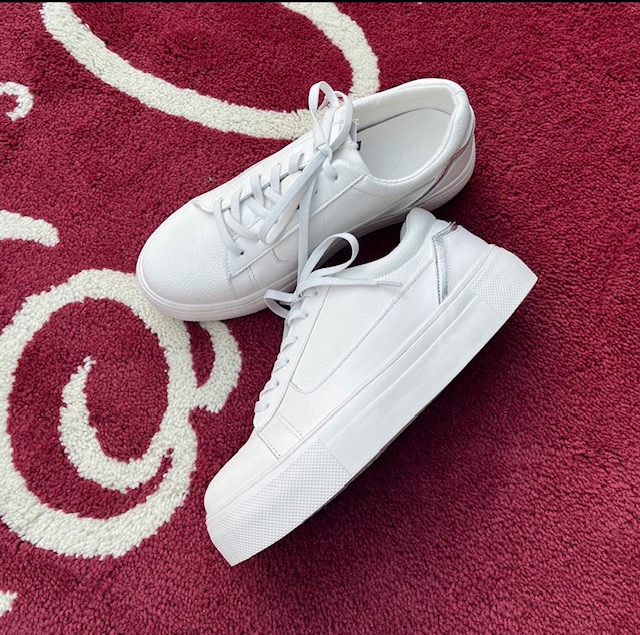 白スニーカー💕¥10000+tax エコレザー✖️リアルレザーのコンビで超軽量でお買い求め安いプライスの厚底スニーカー💕 スポーツ過ぎないから、綺麗めコーデにも合います💕 しなやかでソフトな素材と靴紐をゴムにしてあり、紐を外さなくても脱いだり履いたりが出来る優れモノ💕 23.0〜24.5cm コメントは受け付けていません。