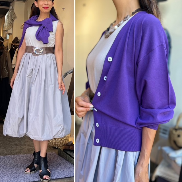 今すぐ着られる秋コーデ💕グレー✖️パープル 綿のトップスにタフタのスカートを合わせたドッキングワンピースが大人気です💕 一枚でサラッと着られて、秋冬は重ね着出来る優れもの⭐️ 高見え素材なのに、めちゃプチプラなのもおすすめのポイントです 完売必至です💕💕💕 お早めにチェック下さいね😃🙌 ライトグレー、チャコールグレー、ブラック、ホワイト✖️キャメルの4カラーで展開中です カーディガン ¥8900+tax 20%オフ🎉🎉🎉 ¥7120+tax シャリ感のある秋カラーのカーディガンは、今すぐお役立ちなアイテムです。 パープルの他に、ブラック、レッドがございます コメントは受け付けていません。