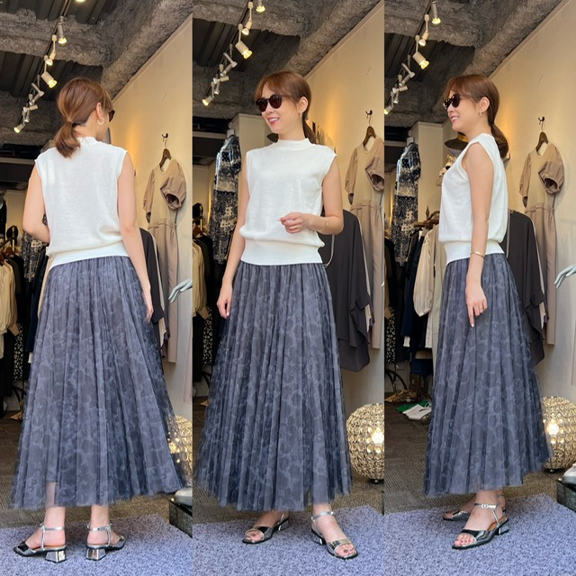 チュールスカート¥14,300✨ 常に人気の高いチュールスカート🩵 コーデに馴染みやすいレオパード柄が落ち着いた印象です✨ ポリエステル100% ニットトップス¥4,290 チュールスカート¥14,300 コメントは受け付けていません。