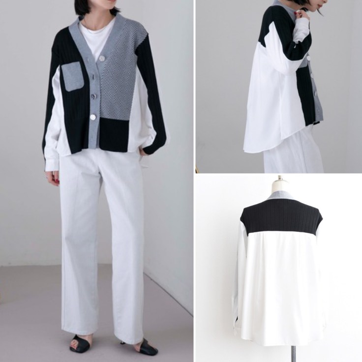 異素材コンビネーションが一枚で主役級なシャツニットカーデ