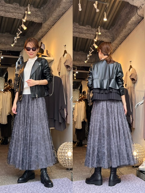 バックフリルライダース バックフリルがポイントのライダース✨ フロントはシンプルなライダースのデザインですが、バックはフリルで女性らしいデザインです💕 ぜひご試着にいらしてくださいませ✨ コメントは受け付けていません。