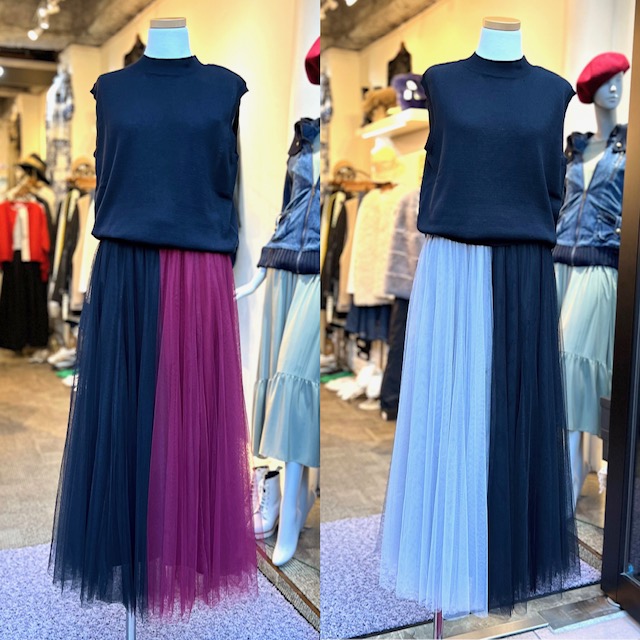 配色チュールスカート💕 3色の配色のデザインが存在感のあるチュールスカートです✨ お好み位置で穿いていただけるので、 360度どこから見ても、配色の見え方が違って、1色のようにも、2色、3色のようにも見えて、穿く位置によって雰囲気の変化を楽しんでいただけます✨ 表地 ポリエステル 100% 裏地 ポリエステル 100% サイズFREE スカート ¥14000+tax コメントは受け付けていません。