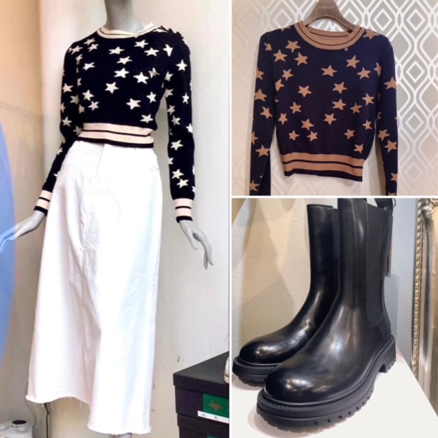 星デザインニット🇮🇹¥10000+tax イタリア🇮🇹から届いた星ニット💕 左肩に並んだボタンも素敵です ショートの着丈ですっきりシルエット💕 ノンチク〔チクチクしない〕非ウール素材で、春までヘビロテしてくれそうーーー インポートは追加が難しい商品になりますので、お早めにチェック下さいませ。 ブラック✖️ホワイト ネイビー✖️ブラウンの2カラー🩷 小柄さんにはお薦めのデザインです サイズ M 本革ブーツ ¥17900+tax 22.5〜24.5 ソール2cmヒール4cm コメントは受け付けていません。