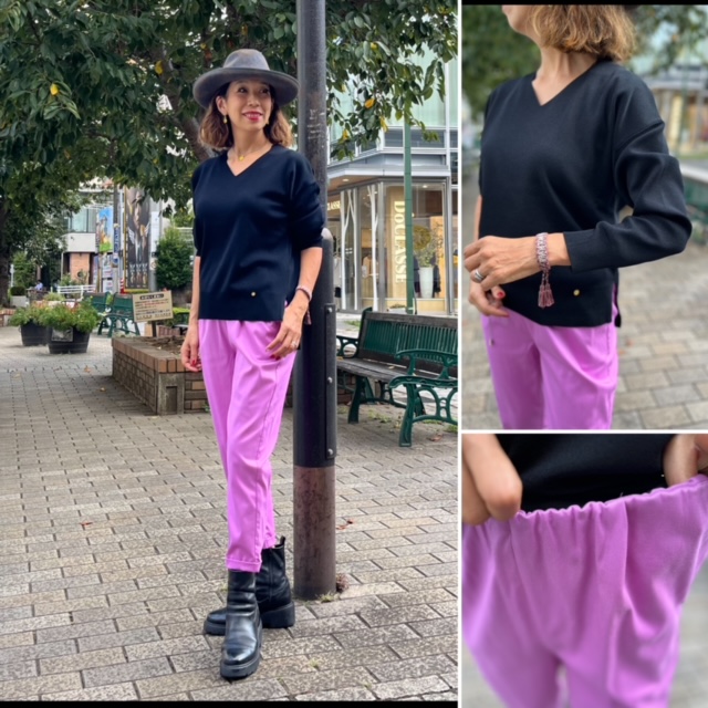 秋のピンクコーデ💕 フューシャピンクのストレッチテーパードパンツをブラックのニットで秋っぽくコーデ。 赤はこのくらいビビットなピンクが素敵です💕 サラッとしたテンセル混紡の伸縮するテーバードパンツは、抜群の発色と履き心地⭐️ 小柄さんにもお薦めの着丈です ニット ¥12000+tax 白、ピンク、イエロー、ブラック、ラベンダー アセテート60ポリエステル25ナイロン15 ウォッシャブル パンツ ¥9800+tax フリーサイズ テンセル70コットン26ポリウレタン4 コメントは受け付けていません。