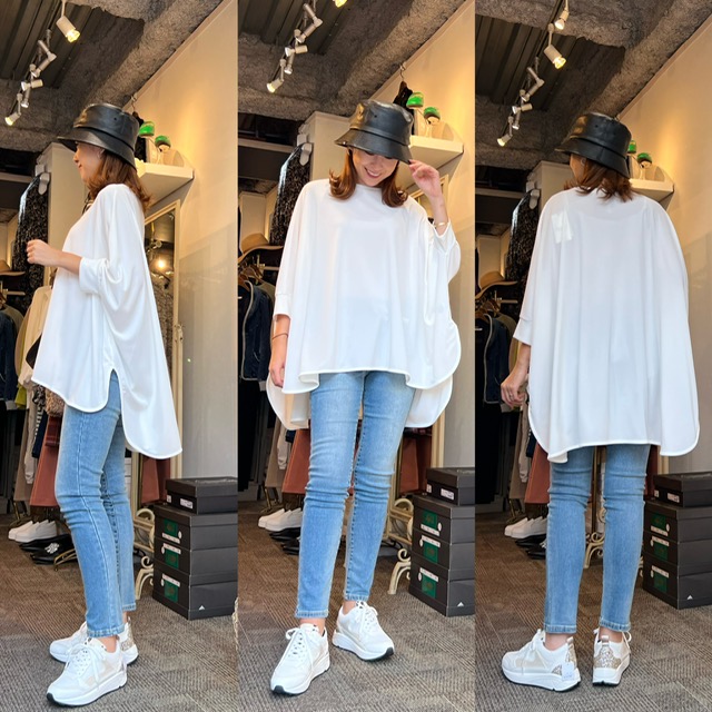 ドルマントップス¥10,890✨ しなやかで動きのあるドルマンシルエットのトップス✨ 裾に向かって広がるシルエットなので体型カバーも👌🏼 ポリエステル100%でお手入れも楽ちんです💕 ドルマントップス¥10,890 コメントは受け付けていません。