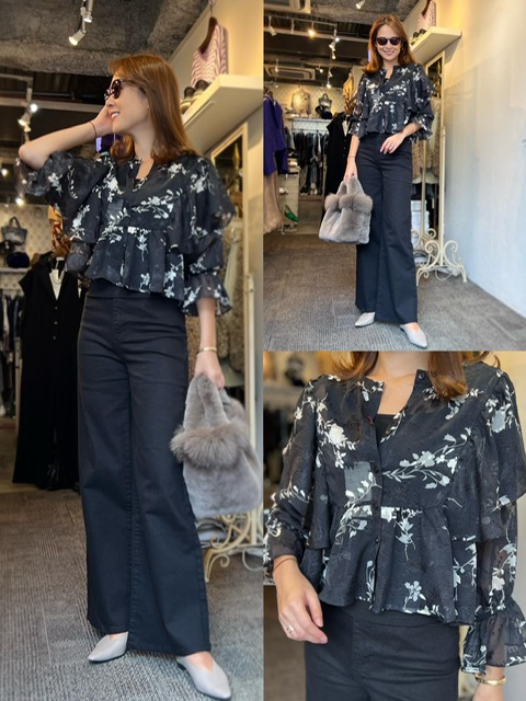 透け感のあるシアーブラウス✨ フラワープリントが大人っぽく、程よい肌見せが楽しめます💕